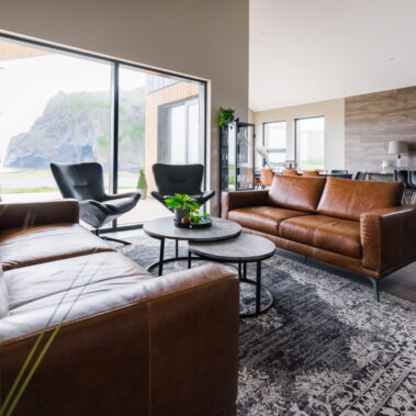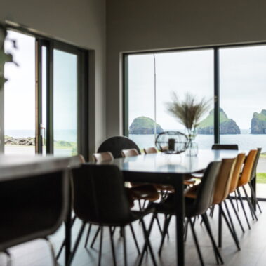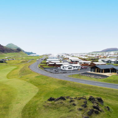 Our self-catering Ocean Villas are located in Búhamar, on the west side of the main island Heimaey, where you get one of the best views over the Westman Islands. We want you to enjoy the view to the fullest and that is why our villas have large windows facing west. From the comfort of your living room you get a panorama view over the cliff and towards the great Atlantic Ocean. They’re also situated right next to the island’s golf course so you can jump out to take a swing right after your cup of coffee.